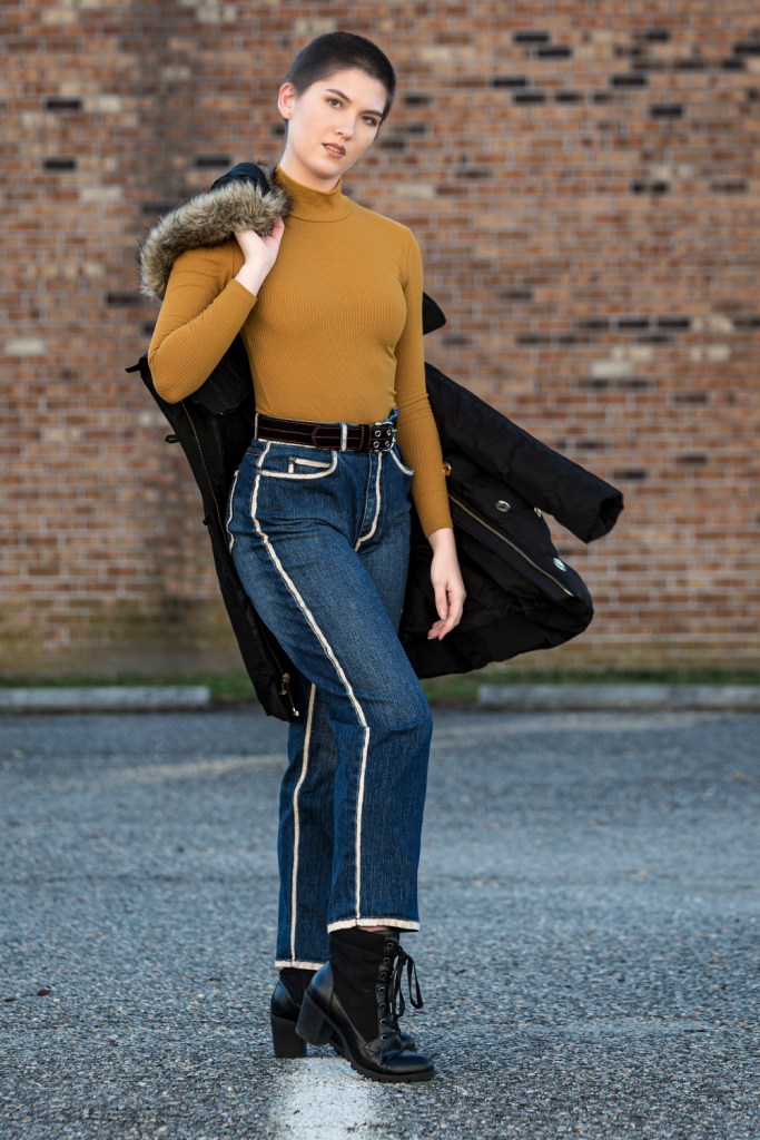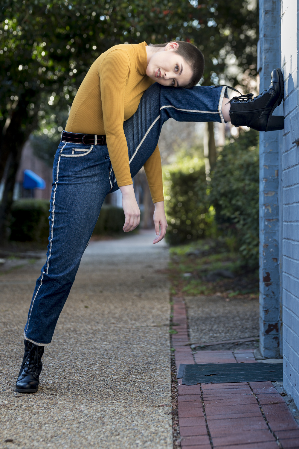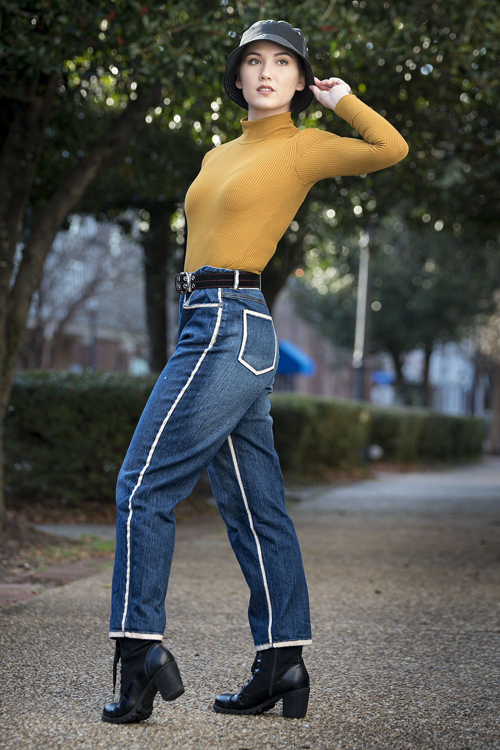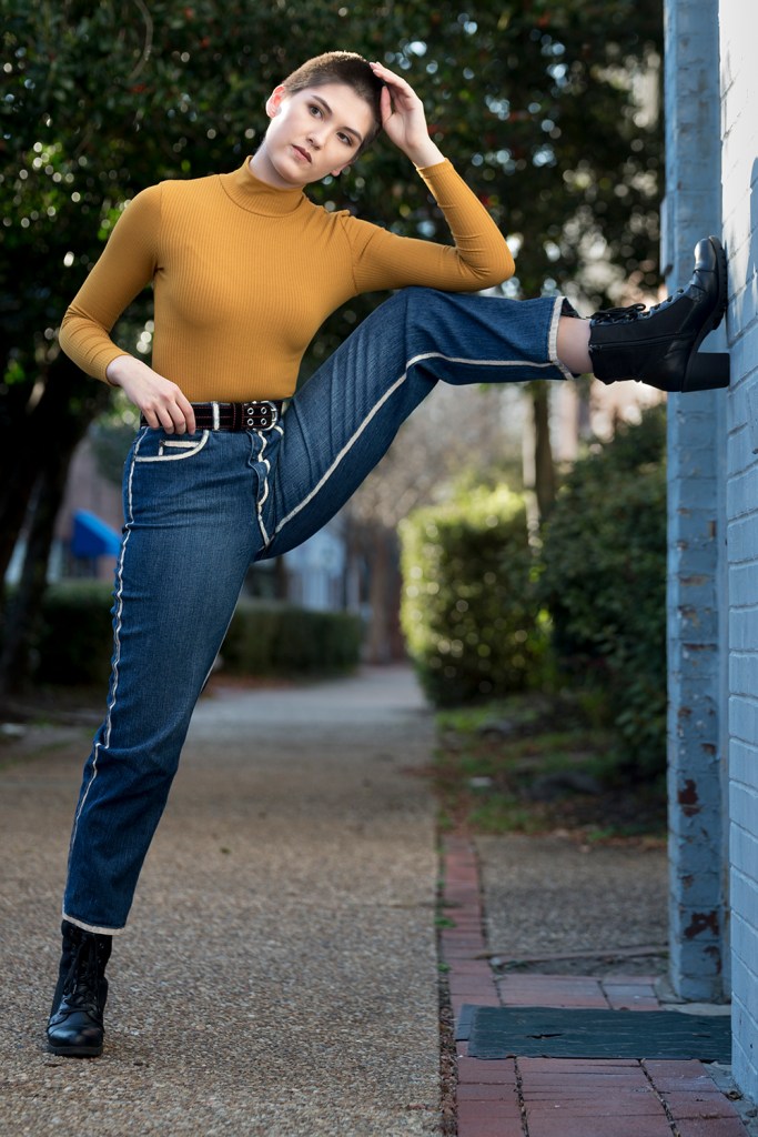 Two of my tenets on doing fashion are that you can follow trends or you can set them and it’s not what you wear but how you wear it or make it your own. Take jeans, for example. The basic premise of jeans hasn’t changed in over 100 years. But look at the versions we’ve had over those years. Bell-bottom, boot cut, designer, acid-wash, stone wash, ripped, low riders, high-waisted…the list goes on. Easton made hers unique by painting the white stripe on hers.