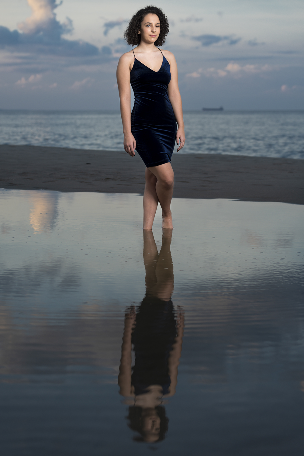 We were blessed beyond belief. We had a beautiful, warm day. We had a semi-cloudy sunset that created a colorful, dramatic backdrop. The beach was nearly deserted. Most importantly, there was a large puddle of water separate from the ocean. As soon as we hit the sand I saw that reflective pool and never had a second thought as to where we would set up shop.
