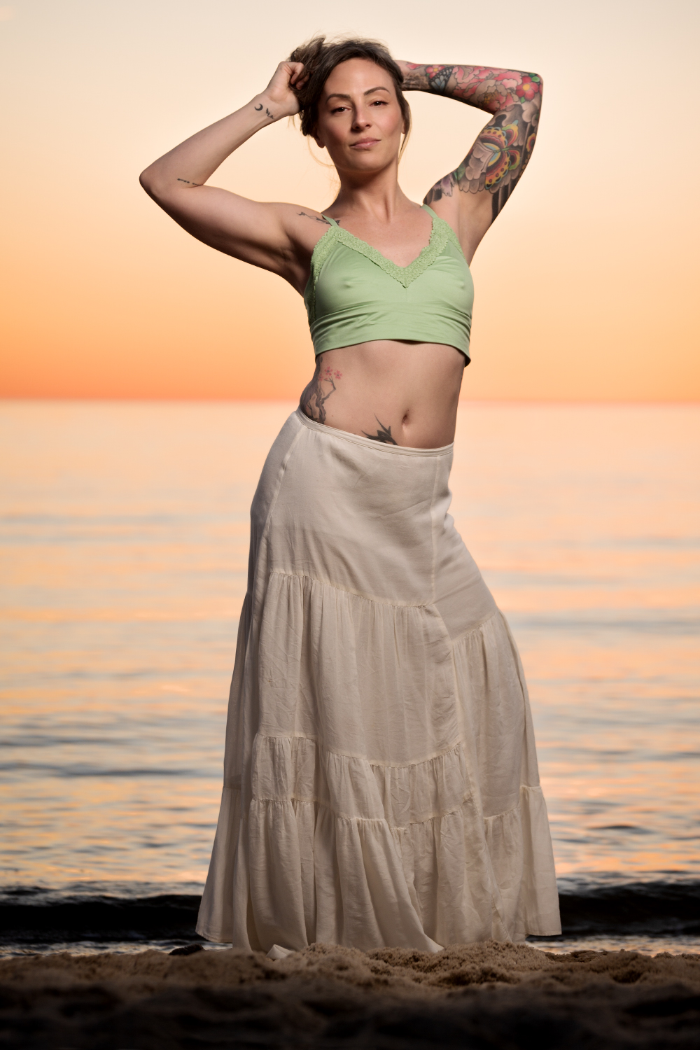 This way, when the magic light happens about 15 minutes before sunrise, we have a game plan in place. We know what outfits to wear against the sunrise, what poses work, the model is warmed up, and we are firing on all eight cylinders.