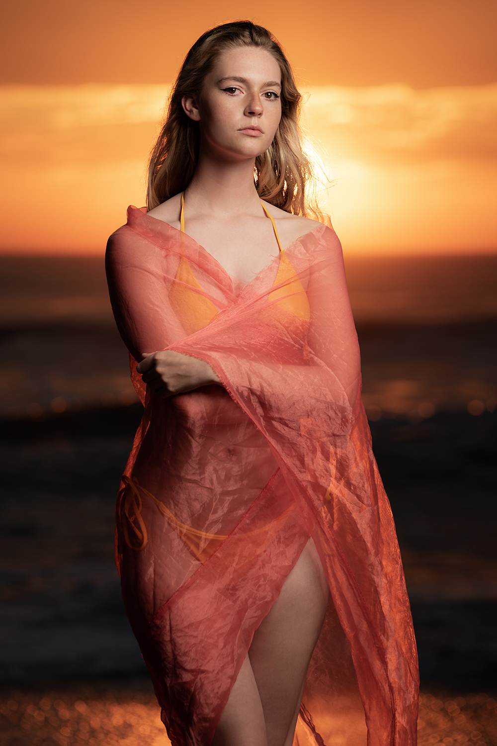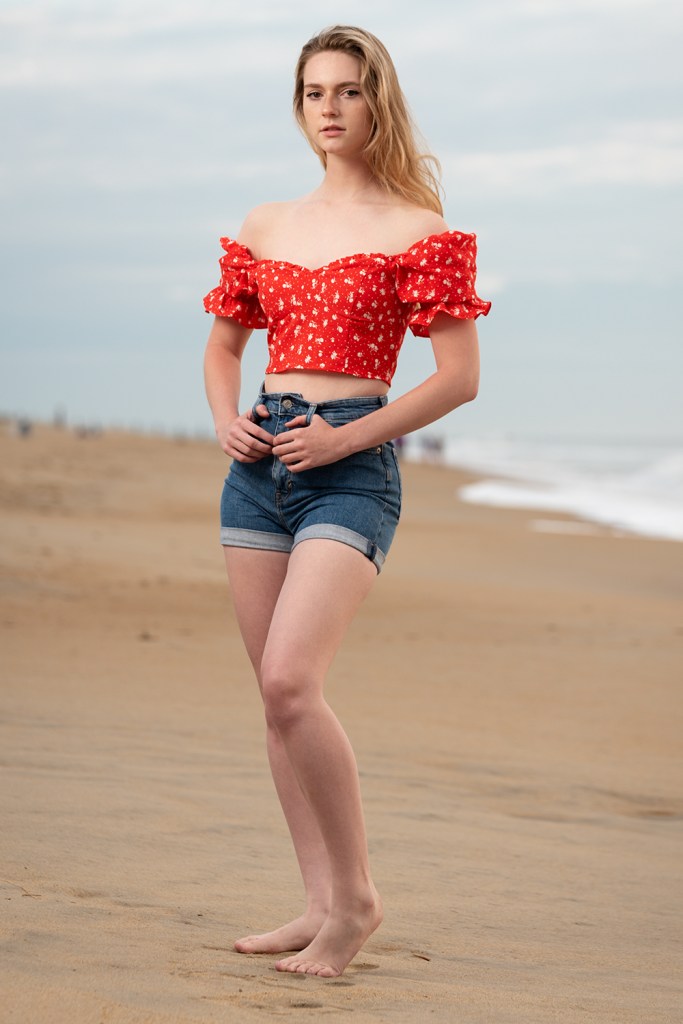 - Outfits aren’t important. What order you shoot them in is paramount. Typically beach sessions are more reveling that a general session with swimsuits, backless summer dresses and such. Tight, constrictive, clothing is the enemy here. Tight clothes leave lines and patterns on the skin that take a good 35-45 minutes to fade away. I could end up spending the same amount of time trying to remove them in post. What I try to do, with client’s consent beforehand of course, is have them arrive to the session not wearing anything that would leave a mark. The obvious items would be bras, tight pants, and belts. Not so obvious but just as bothersome, are socks and shoes. During the session, we start with more more reveling shots first like swimsuits, backless dresses and such and then, at the end, wrap it up with the tight shorts, shirts, et cetera. If we start with tight stuff, we can put something loose on with nothing underneath and shoot that until the lines fade. Either way works far better than trying to edit it out after the fact. Work this out with your client before the session.
