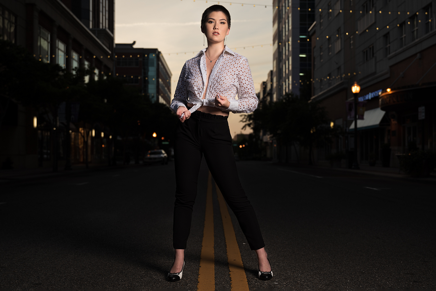 It was magical. Music was provided via cellphone and we were playing in the street. My desire for a colorful sunrise was realized. Easton was her usual fun, stunning self. We moved as a cohesive unit, Easton Colleen, and I, as we captured amazing shot after amazing shot. We started with higher end fashion at Town Center and then transition to the gritter, dirtier back alleys of Norfolk to change things up. We put in over four hours of shooting when it was all done.