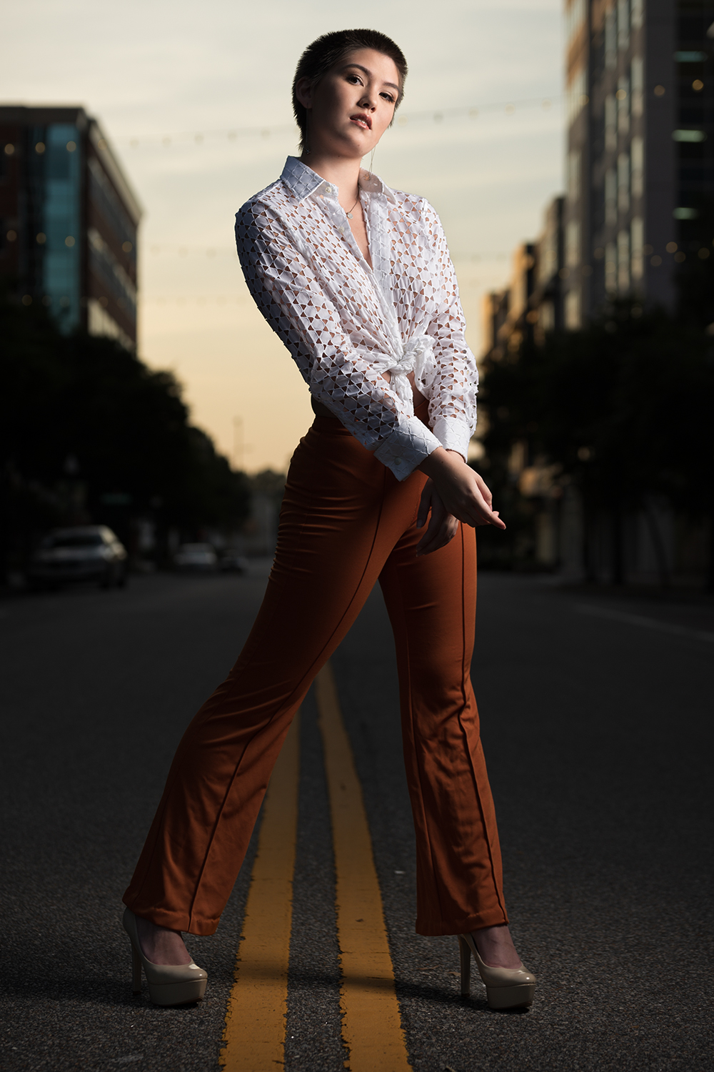 So, it was a Dream Team that gathered recently to do a fashion session. We wanted to get in several looks at various locations before the light went bad and the heat drove us inside. We mapped out what kind of images Easton needed/wanted and the outfits were picked out days before the session. Because of this, I knew where to shoot to provide the appropriate backdrops.