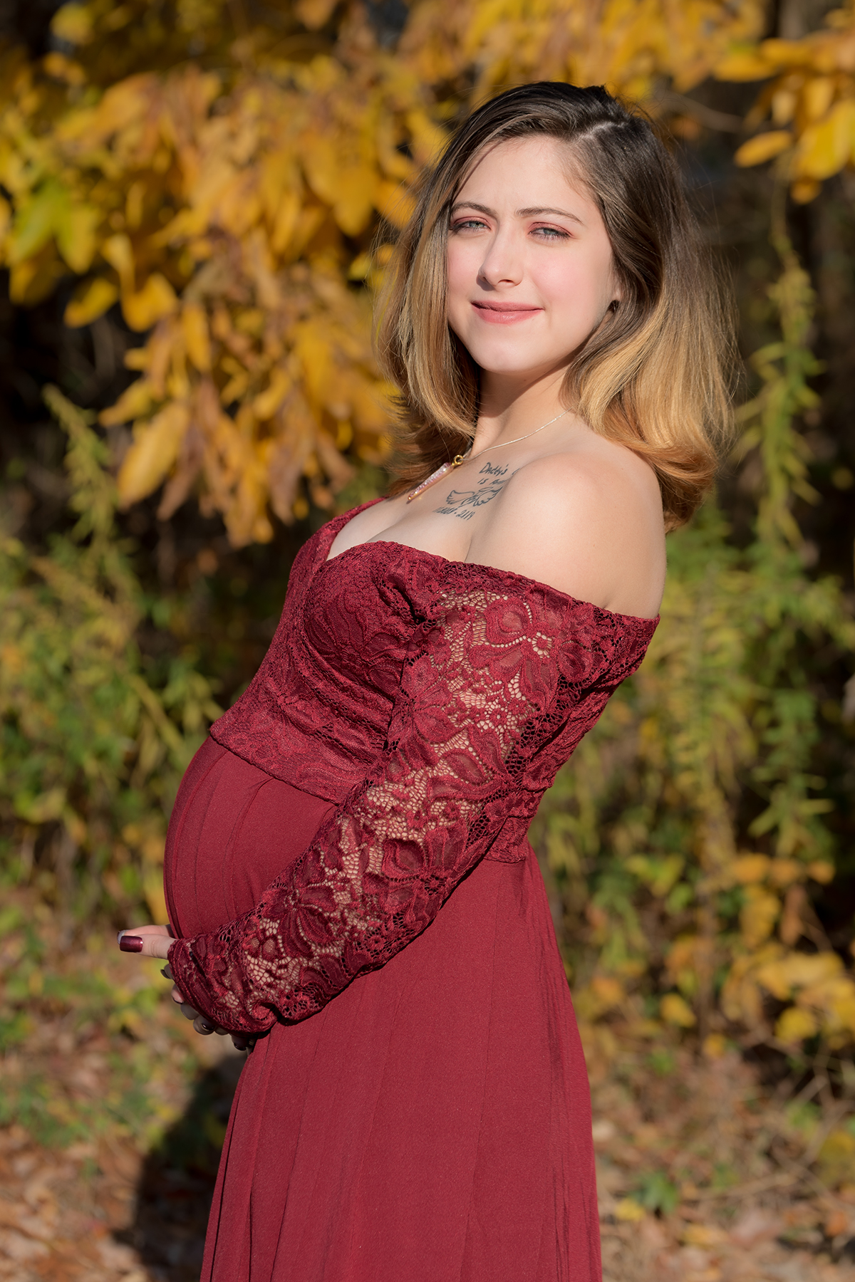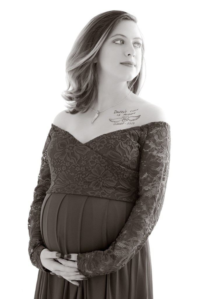 The best time to do a maternity session is between 28-34 weeks. This is the golden time for a maternity session. You’re far enough along to have a nice baby bump but not so far along that it’s uncomfortable. Also, you have enough of a buffer zone so that, if you have to cancel because of bad weather, you just don’t feel well or whatever, there’s still time to get it in down the road.