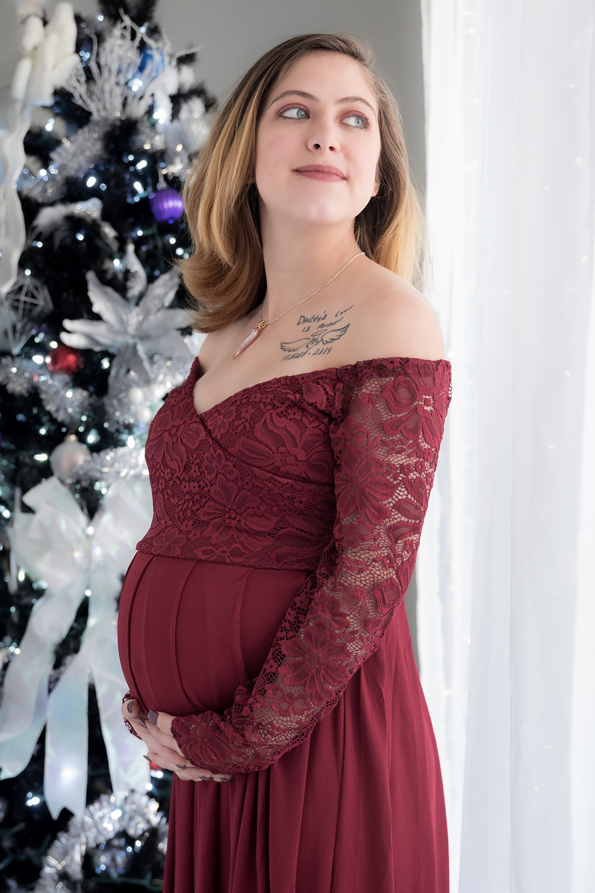Don’t wear tight clothing to the session. This can leave marks on the skin that are hard to retouch in your maternity photos.