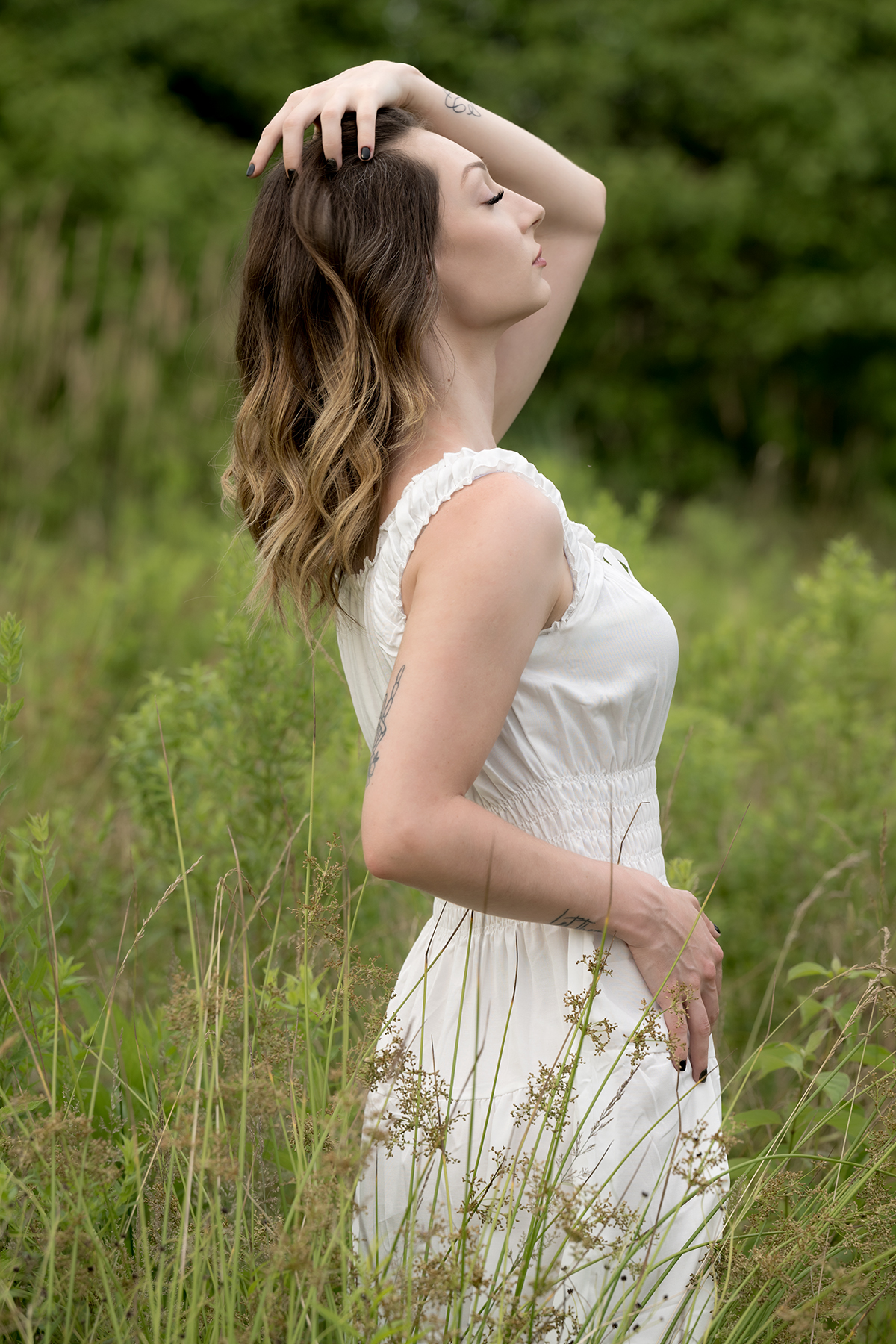 Ashley brought the perfect mix of natural charm and ease to the session. Surrounded by tall grass, dirt paths, and the gentle glow of the sinking sun, she blended seamlessly with the country backdrop. We chased the last rays of daylight, letting them spill across her hair and frame her in soft, warm tones.